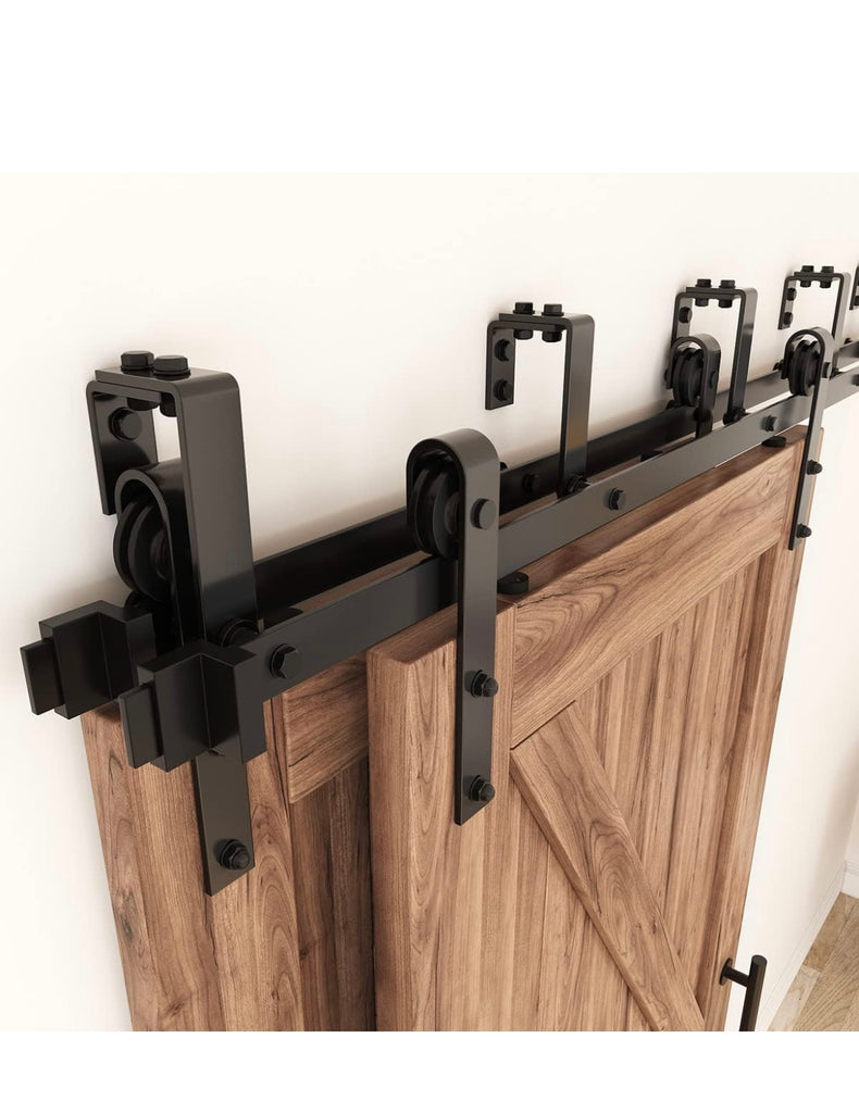 - 【About ZEKOO Double Track Bypass】If you want the opening to show as much as possible, this kit offers a better solution than the single track. 2 separate tracks allow the barn door to slide on the track you desire, so the doors won't affect each other when sliding. Then no need to worry about the door overlap compared to the single track bypass kit.