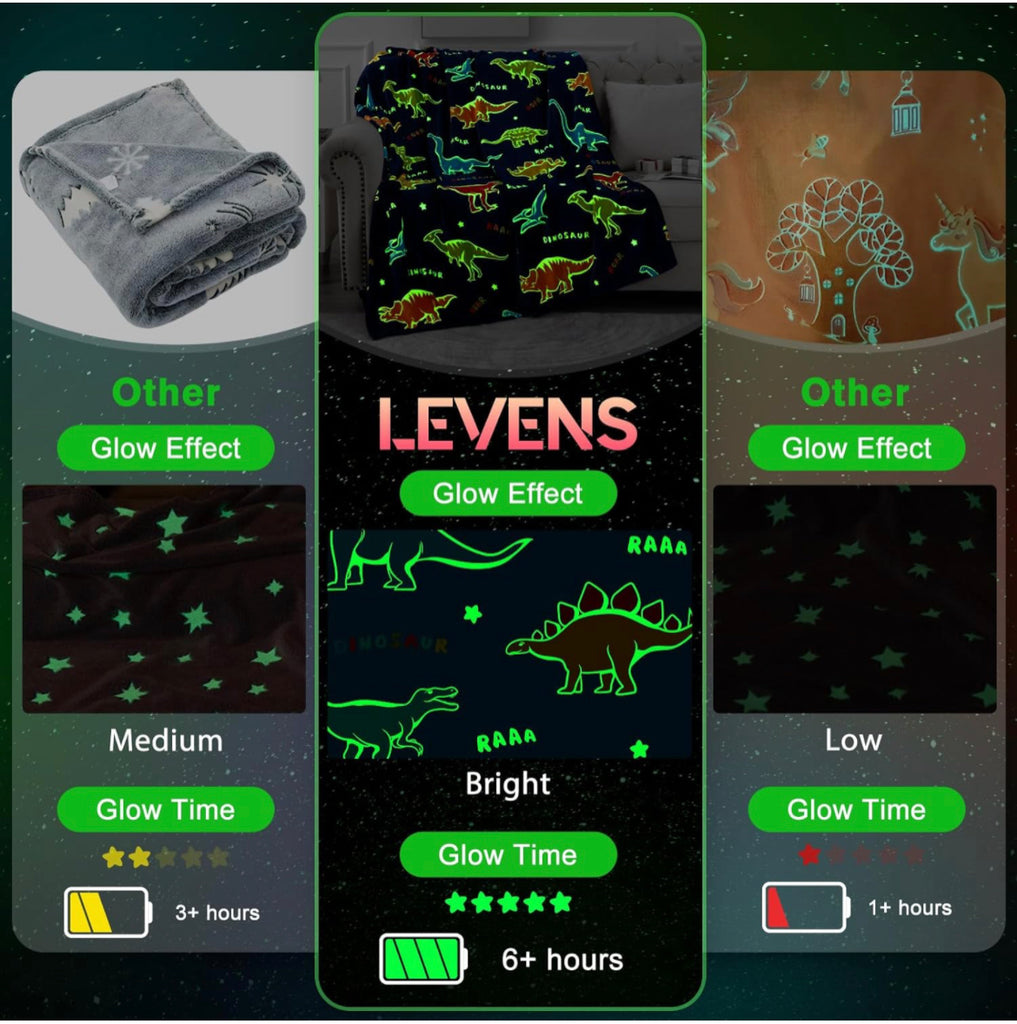 - Satisfactory Service - If there are any quality problems with this cool dinosaur glow in the dark blanket, please do not hesitate to contact us directly by email, we will give you a satisfactory answer. Customer satisfaction is always our top priority. We are sure that you will love this dino throw blanket for kids. Please rest assured to buy.