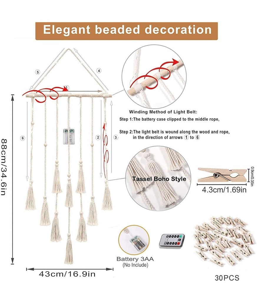 - BOHO ROOM DECOR: It can bring some texture and interest to your bedroom, dorm room, living room, apartment, work area or any wall you want to come decorate with a wall mount. At the same time, fairy lights can add a warm and sweet atmosphere to a room.