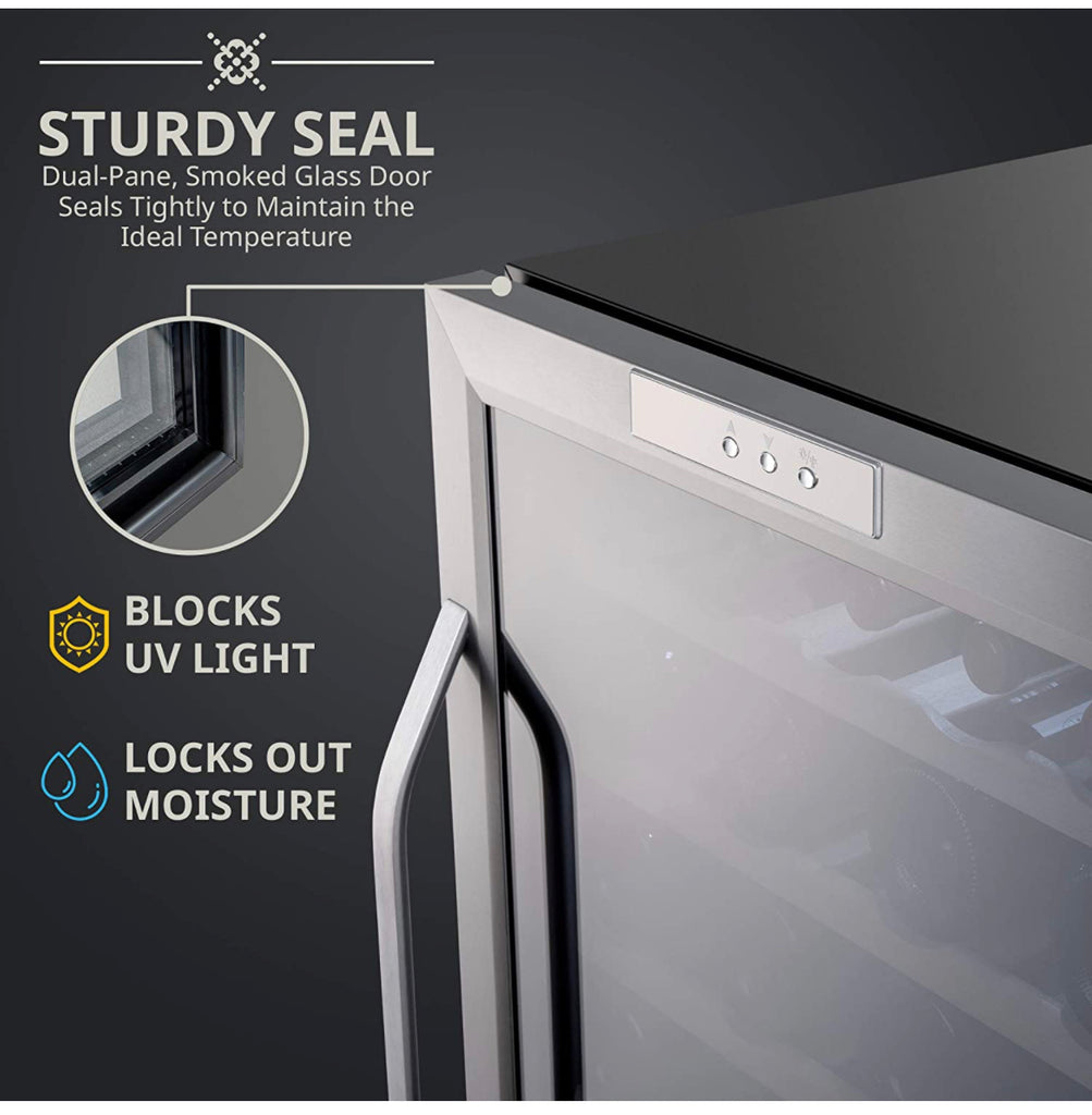 - UV-RESISTANT DOUBLE-PANED THERMOPANE GLASS - A double-paned glass door not only keeps the interior insulated, but also protects your collection from harmful UV light that can damage the tannins and overall flavor of your wine.