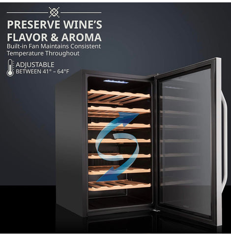 - PRESERVE WINE’S FULLEST FLAVOR & AROMA - Set the temperature and let the wine cooler do the rest. With a built-in fan that maintains a consistent temperature throughout, this cooler ensures an optimal environment for long-term wine storage.
