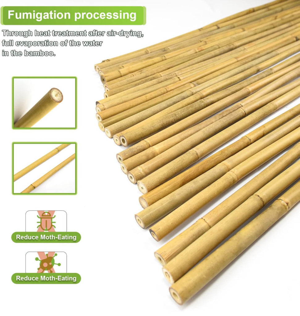 - DURABLE : Sturdy bamboo are through heat treatment after air-drying, full evaporation of the water in the bamboo, that why the bamboo stakes 6ft become harder and more durable. The bamboo surface are smooth, It doesn't pricked your finger.