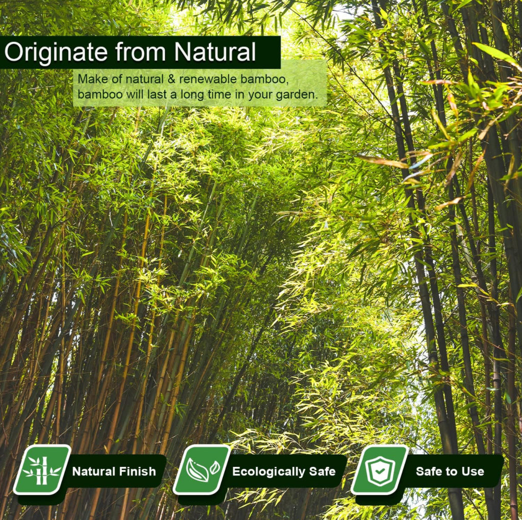 - QUALITY : Jollybower bamboo garden stakes are make of highly renewable and 100% natural bamboo, premium bamboo will last a long time in your garden. Our bamboo poles 6ft are sustainably grown in Southeast Asia, where they are hand cut and hand selected for only the premium bamboo. Bamboo stakes are safe to use and Eco-friendly, will not hurt your plants & family.