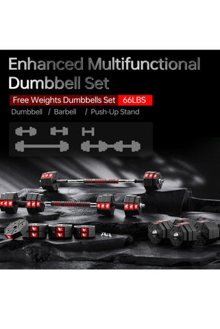 - ✅【3 in 1 DUMBBELL SET】: This adjustable dumbbell set total weights are 66pounds. You can adjust the weight of the dumbbell according to your needs. The dumbbell is equipped with a connecting rod. You can convert it into a barbell in a few seconds, which can meet the exercise needs of upper and lower limbs. Helps to tone and shape the arms, shoulders, back and strengthen your muscles. Multifunctional strength training equipment provides a better training method than any other sports equipment.