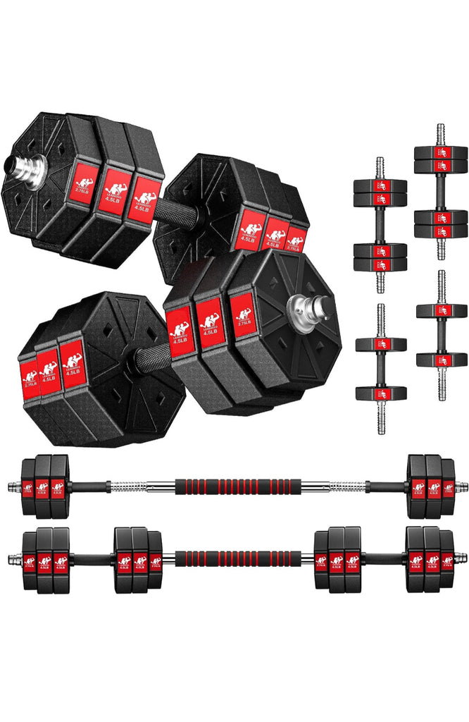 - ✅【SAFE and DURABLE】:This adjustable 3 in 1 dumbbell set is made of durable PE material. Unlike iron dumbbells, it will not scratch the floor. It is very safe and durable. The octagonal design of the Dumbbell plates can prevent it from rolling, More stable. And we upgraded the nut, installed non-slip screws, double fixed, more secure.