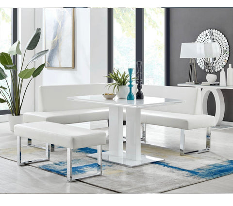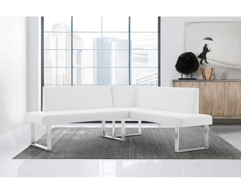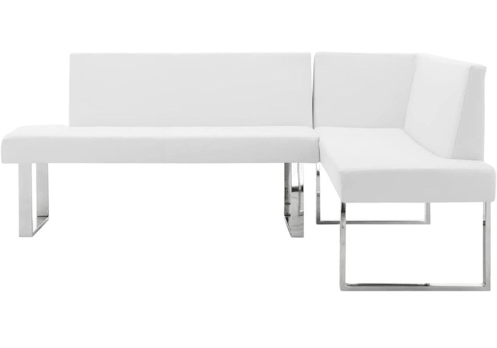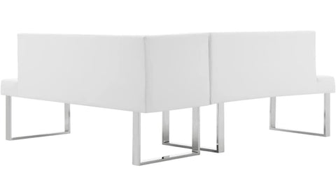 - Made in vinyl. Measures 79.5 inches wide by 69 inches deep by 33 inches high (Seat Height 18.5", Seat Depth 17") Left Bench - 23" L x 56" W x 33"H (79.5" to corner) Right Bench - 23" L x 66"W x 33" H