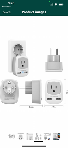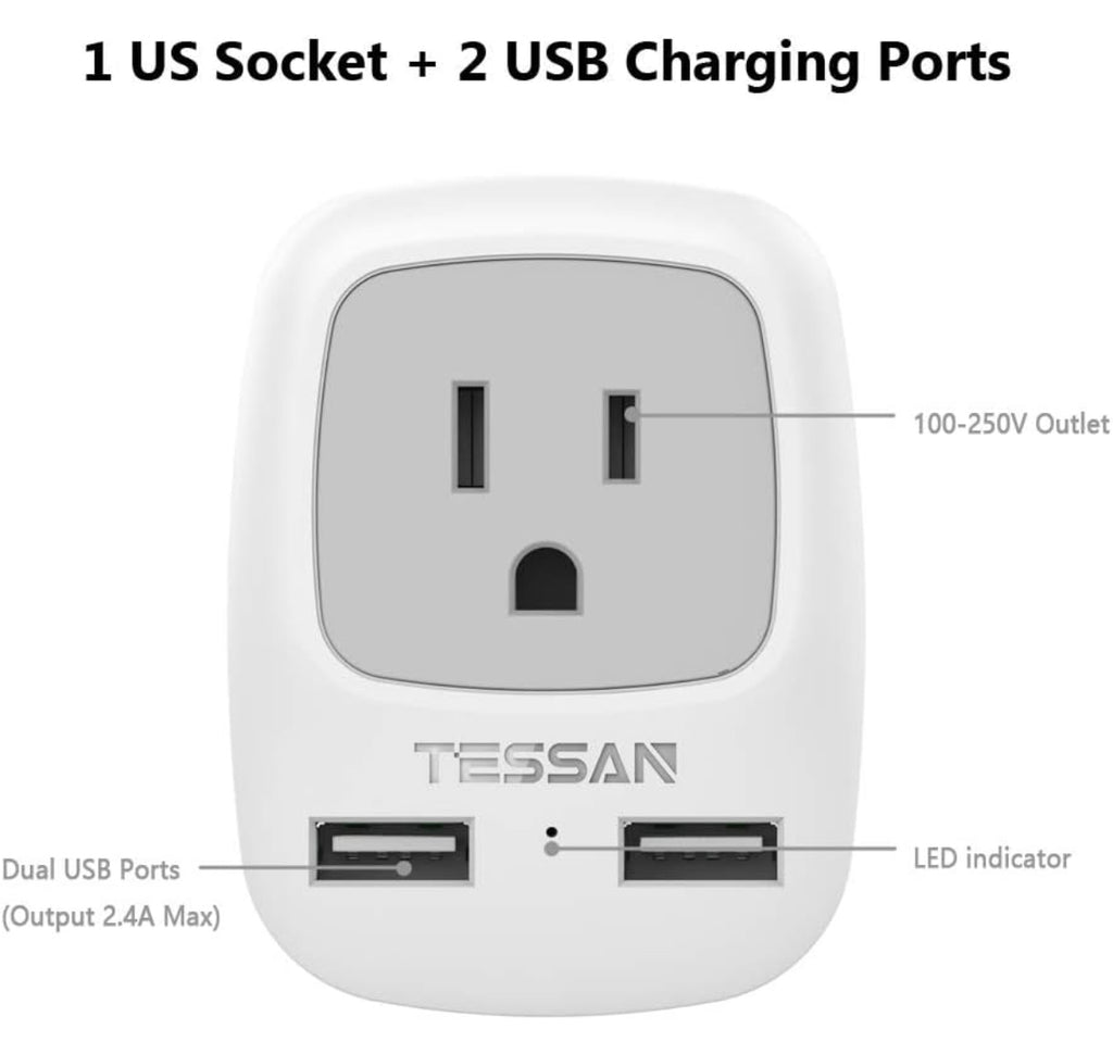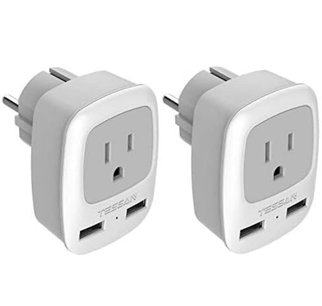 - 3 in 1 Inputs Wall Outlet Adapter: This adapter for Europe accepts the standard N American 2 or 3 prong flat pin plug, max capacity up to 2500 watt (max 250 Volt, 10 A); Dual USB charges up to 2.4A; Ideal for charging electric product like cell phone, tablet and other chargers; No need to carry extra adapter and power strip for your traveling, a small US to Germany plug adapter can save your suitcase space