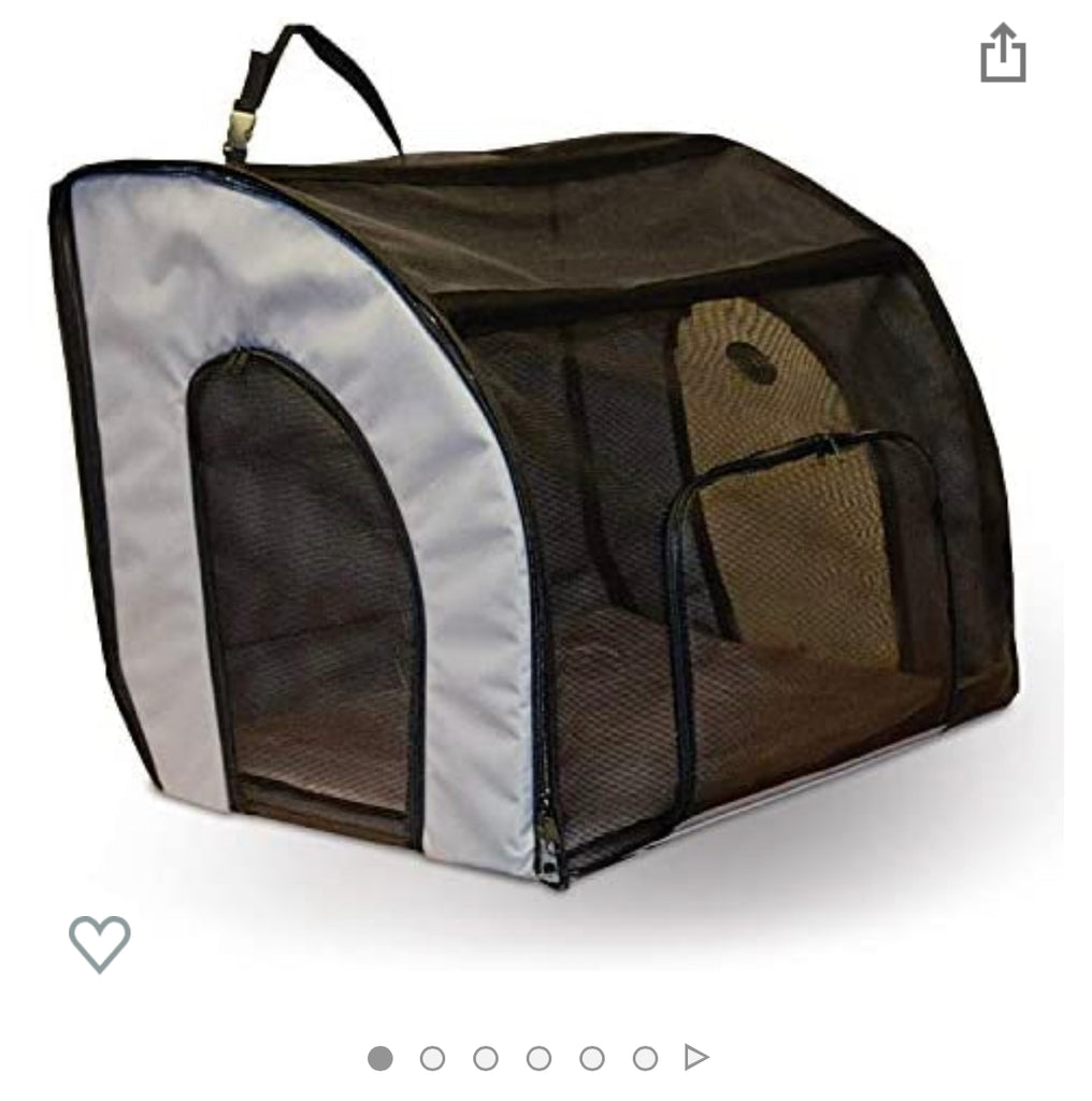 K&H Pet Products Travel Safety Pet Carrier Large Gray 29.5" x 22" x 25.5" https://www.amazon.com/dp/B00CLA14J8/ref=cm_sw_r_cp_api_i_WC01T1W9GEECY9H8JD6R?psc=1