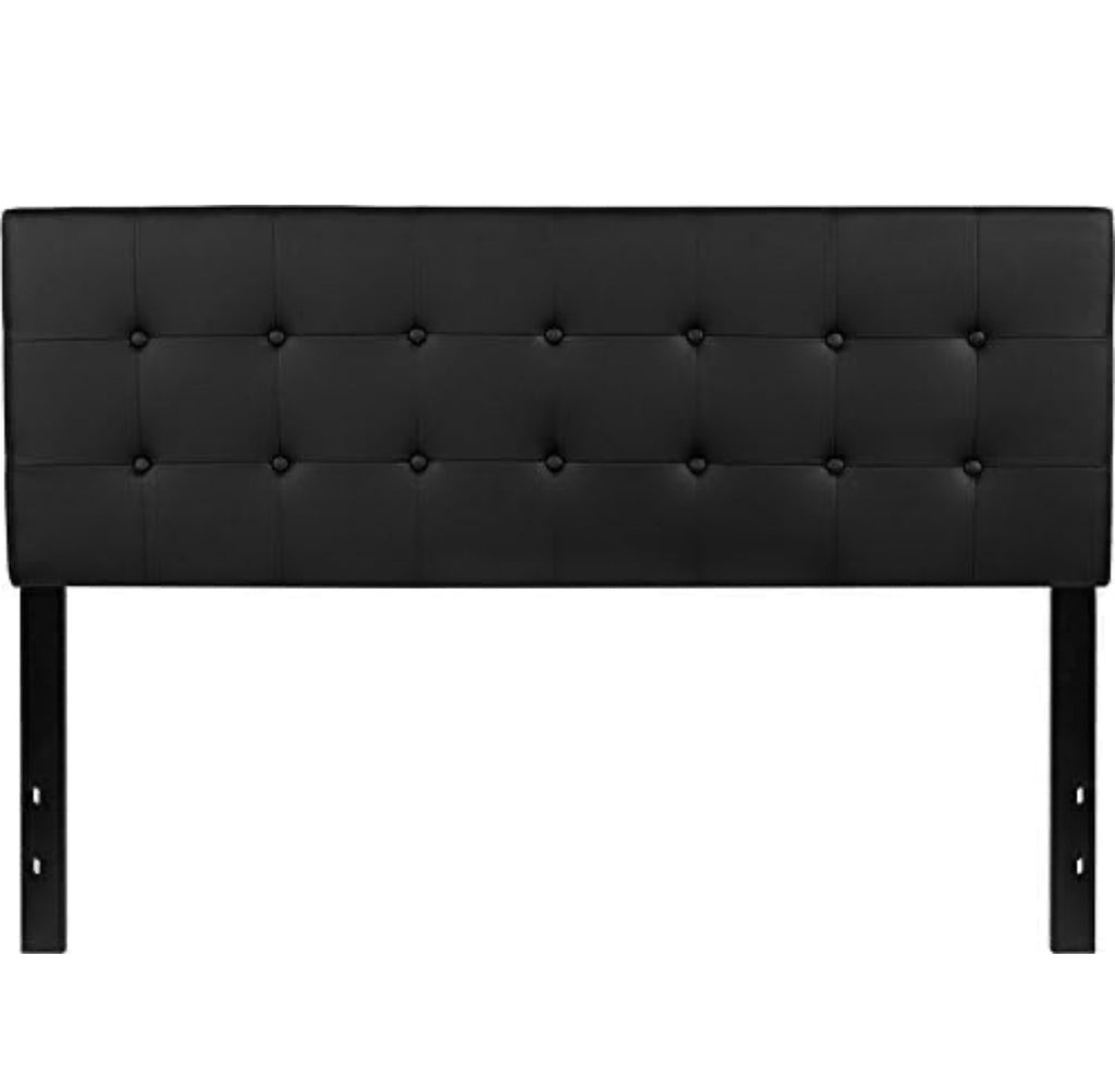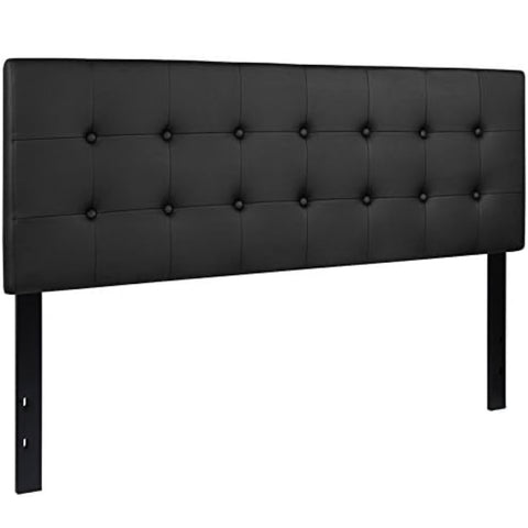 Black. 61.5"W x 2.75"D x 42.25" - 54.75"H. Contemporary Style. Panel Headboard. Black Vinyl Upholstery. Button Tufted with Box Stitching. Headboard Size: 61.5"W x 2.75"D x 22.5"H